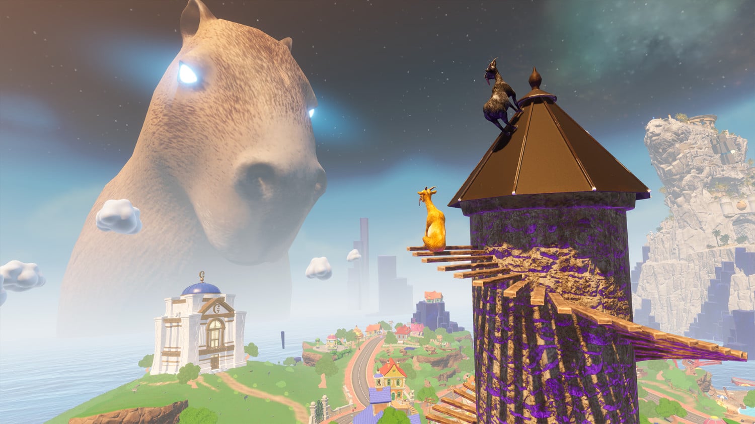 - Entfessle ein von Ziegen angeheiztes Chaos im gesamten Multiversum, aber auf dem Smartphone, und zwar als Ziege
