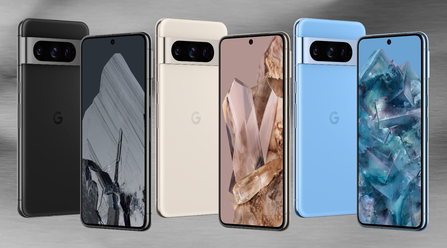 Sowohl das Pixel 8 als auch das Pixel 8 Pro sind in jeweils drei Farben zu haben: Das Pixel 8 in Obsidian (Schwarz), Rose (Rosé) und Hazel (Silbergrau), das Pixel 8 Pro in Obsidian (Schwarz), Porcelain (Cremeweiß) und Bay (Hellblau). Beim Pixel 8 gibt es eine glatte Glasrückseite, eine mattierte Kameraspange sowie einen matten Aluminium-Rahmen. Genau andersherum sieht es beim Pixel 8 Pro aus, hier sind Kameraspange und Rahmen poliert und die Rückseite mattiert.