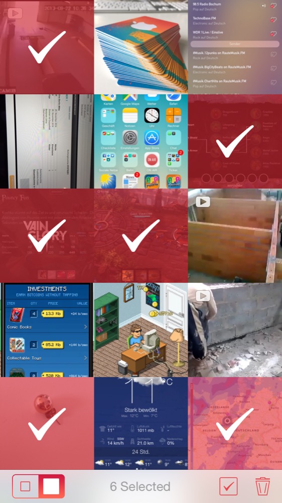 Wer sich sicher ist, dass die Fotos der letzten sieben Tage alle in den Papierkorb gehören, kann diese Einstellungen direkt übernehmen. Weiterhin bietet die App die Zeiträume „In der letzten Stunde“, „die letzten 24 Stunden“, „die letzten 7 Tage“, „die letzten 30 Tage“ der „Alles auswählen“ an. Ebenfalls klasse: Ihr könnt die Auswahl auch per durchgängige Swipe-Geste treffen.