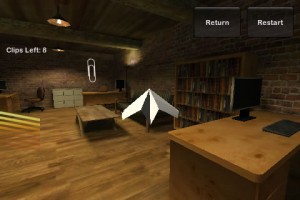 Worum geht es? Ihr müsst mit einem Papierflieger durch verschiedene Räume fliegen und alle Büroklammern aufsammeln. Gesteuert wird das ganze mit dem Bewegungssensor des iPhones, was sich ja eigentlich gar nicht so schlecht anhört.
