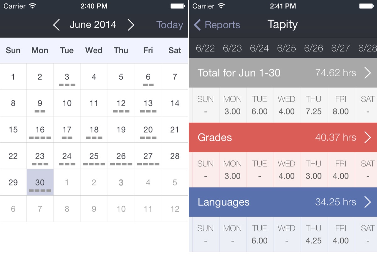 Ich nutze die Zeiterfassung von Taptile Apps. Die gibt es sogar in deutscher Lokalisierung, mit kostenloser Testversion und iCloud-Sync zwischen iPhone und iPad.