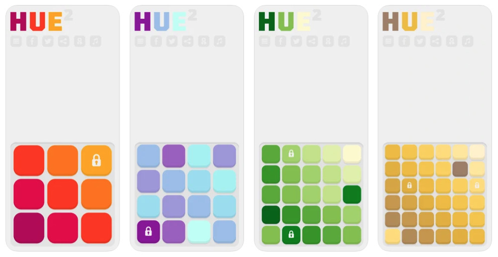 So berichtet der Entwickler Artem Trembach über seine Neuerscheinung im App Store. Insgesamt haben die Gamer ganze 377 Level in HUE² zu bestehen, die laut Trembach „Logik und Farbsinn herausfordern“. Ausgehend vom gesperrten Farbwürfel haben die Spieler und Spielerinnen die im Level vorhandenen Würfel ihrem Farbverlauf nach von hell nach dunkel oder umgekehrt richtig anzuordnen. Da sich die Reihen immer nur zusammen verschieben lassen, gibt es hier gleich von Level 1 an kleine Herausforderungen, die einiges an Herumgeschiebe auf dem Display einfordern.