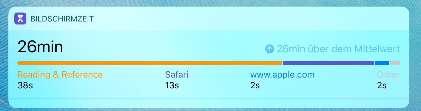 Bildschirmzeit: Das neue Bildschirm-Zeit-Feature liefert auch ein eigenes Widget, das auf den ersten Blick zeigt, welche Apps man am aktuellen Tag besonders lange genutzt hat.