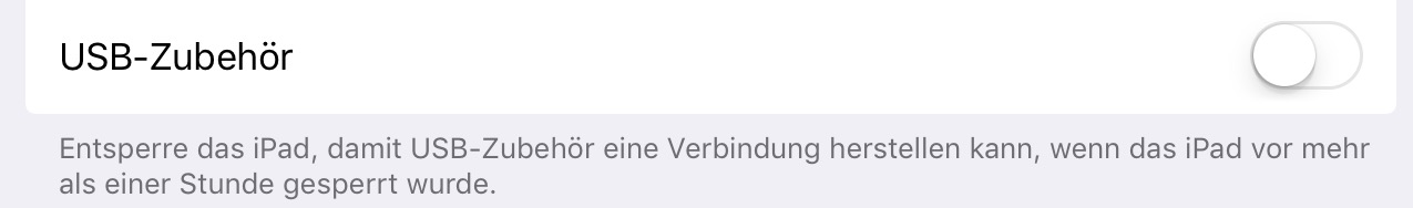 Schutz vor Angriffen: Um Angriffe über den Lightning-Anschluss des iPhones oder iPads zu verhindern, kann die Datenübertragung deaktiviert werden, wenn das iPhone mehr als eine Stunde gesperrt ist. In diesem Fall wird das Gerät nur noch aufgeladen und ist so sicher vor Attacken über den Lightning-Anschluss.