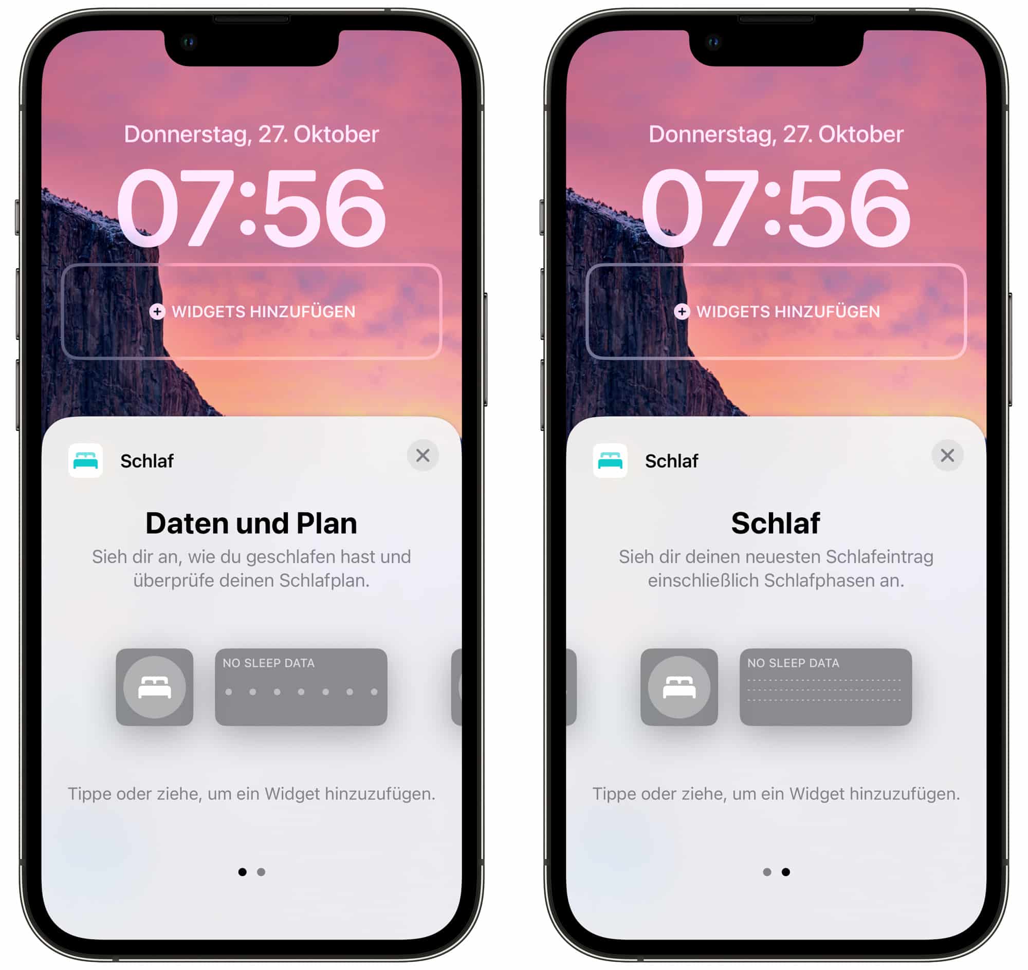 Da auf meinem Test-iPhone keine Schlaf-Daten vorhanden sind, zeigen die Screenshots nur leere Widgets.