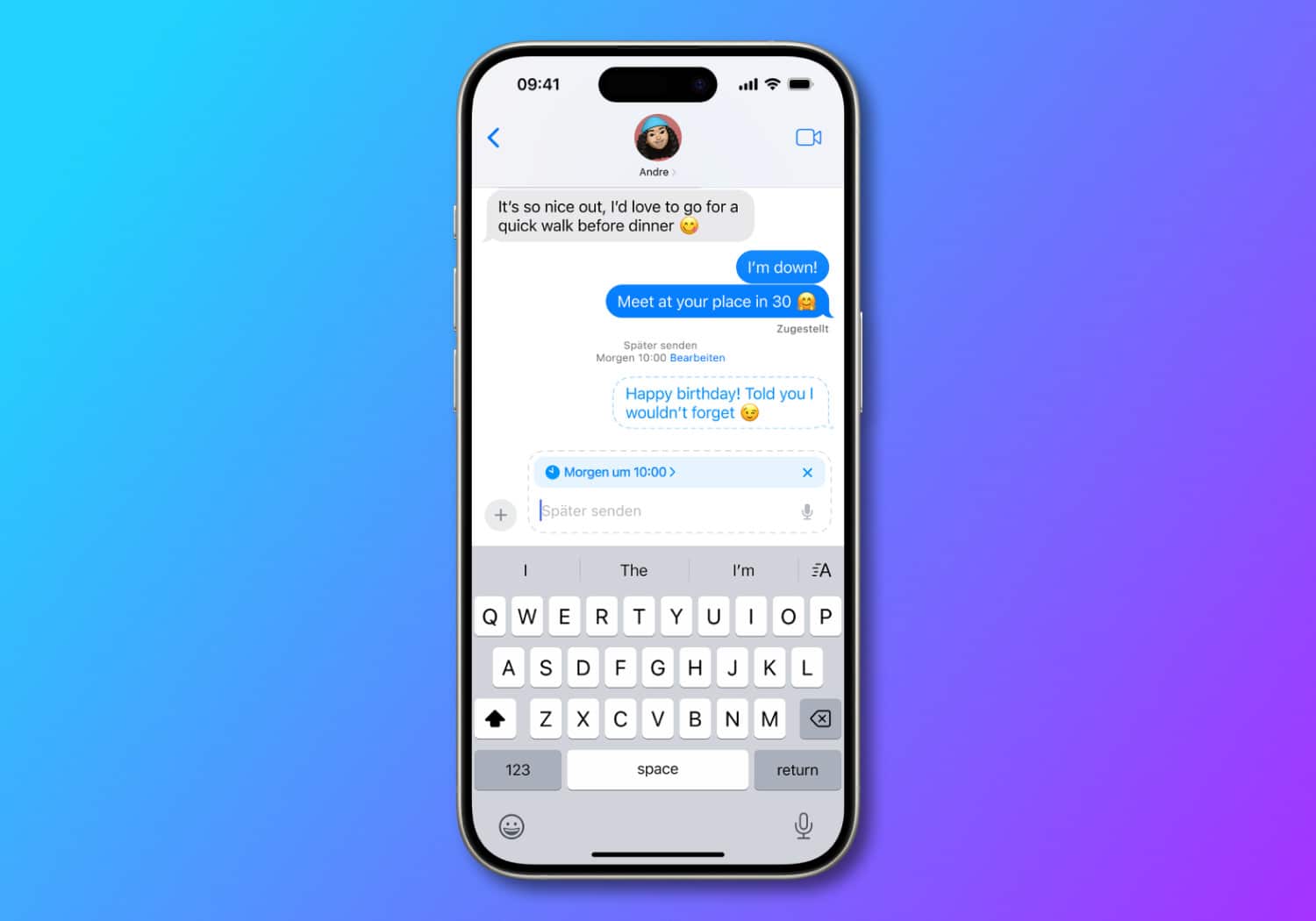 - Tippe auf die Uhrzeit, um den Zeitplan zu öffnen und wähle dann aus, wann du deine Nachricht senden willst