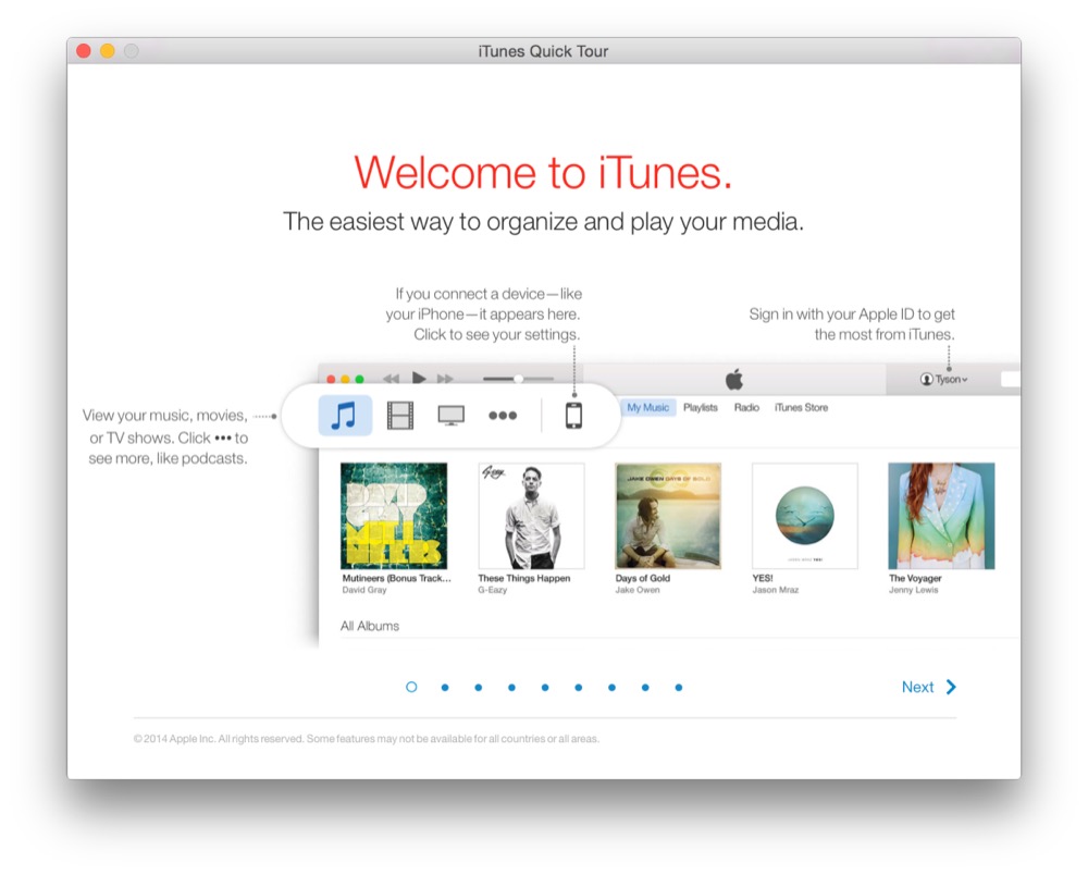 iTunes 12.1 integriert außerdem eine „Quick Tour“, die dem Nutzer alle Neuerungen aufzeigt. Diese Tour ist schon länger auf der Apple-Webseite verfügbar, wurde nun aber direkt in iTunes verfügbar gemacht. Des Weiteren hat sich Apple um Verbesserungen bei der Synchronisation von iOS-Geräten gekümmert.