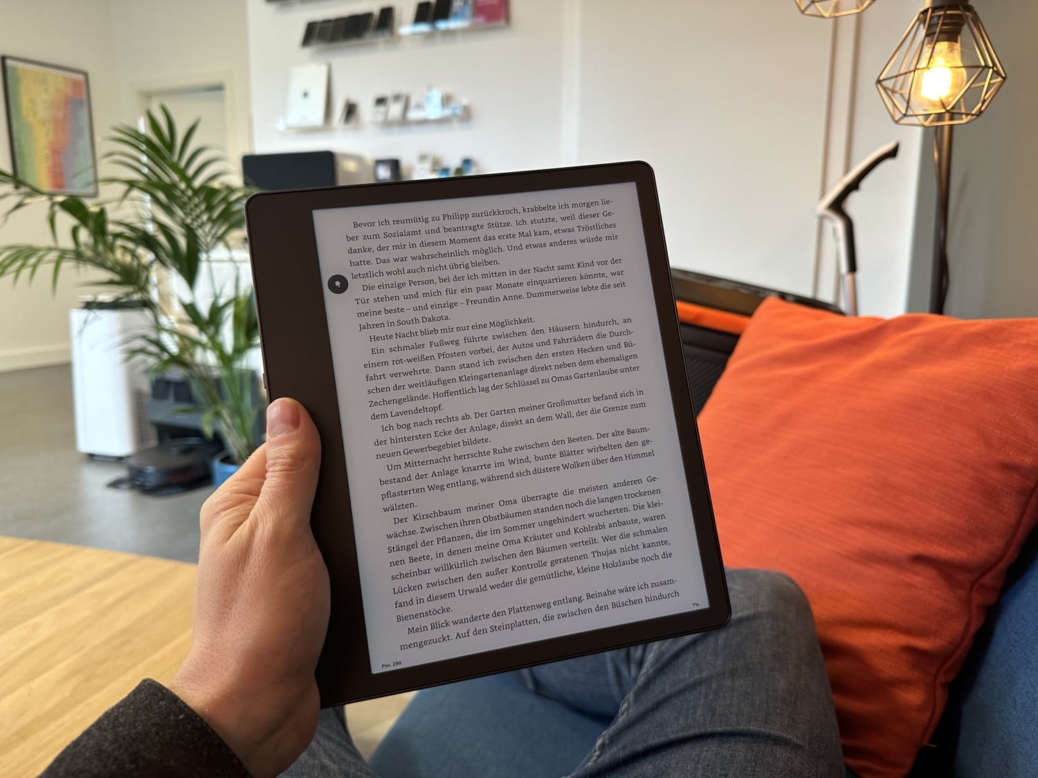 Natürlich macht das alles den Kindle Scribe nicht zu einem iPad-Ersatz. Der Ansatz ist durch das eInk-Display ja auch ein ganz anderer. Der Kindle Scribe punktet mit seiner langen Akkulaufzeit, dem selbst bei Sonneneinstrahlung sehr gut ablesbarem Display, dem tollen Schreibgefühl mit dem Eingabestift und den Lese-Funktionen eines Kindle.