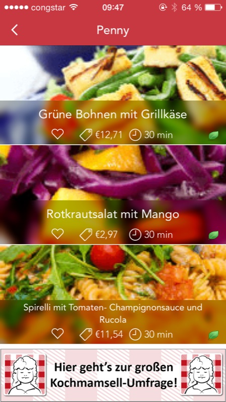 Die Lösung heißt in diesem Fall: Kochmamsell. In der kostenlosen Rezepte-App werden Rezepte anhand des Angebots aus elf verschiedenen Supermärkten wie Aldi, Kaufland, Penny oder Rewe gekocht. Alles, was man für das Gericht benötigt, bekommt man im ausgewählten Supermarkt. Die Entwickler legen dabei wert darauf, dass es ständig neue Rezepte gibt und insbesondere Angebote aus dem Wochenprospekt einbezogen werden.