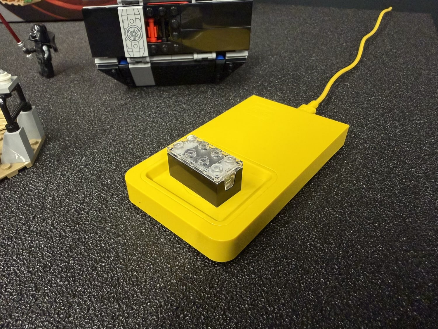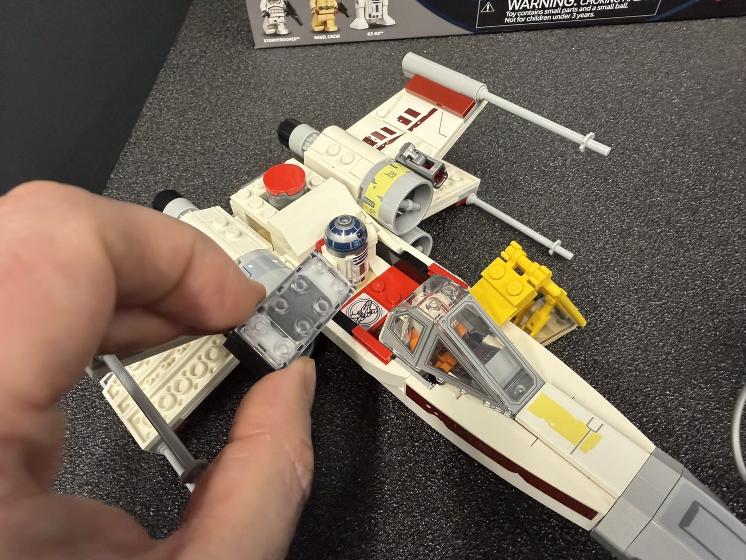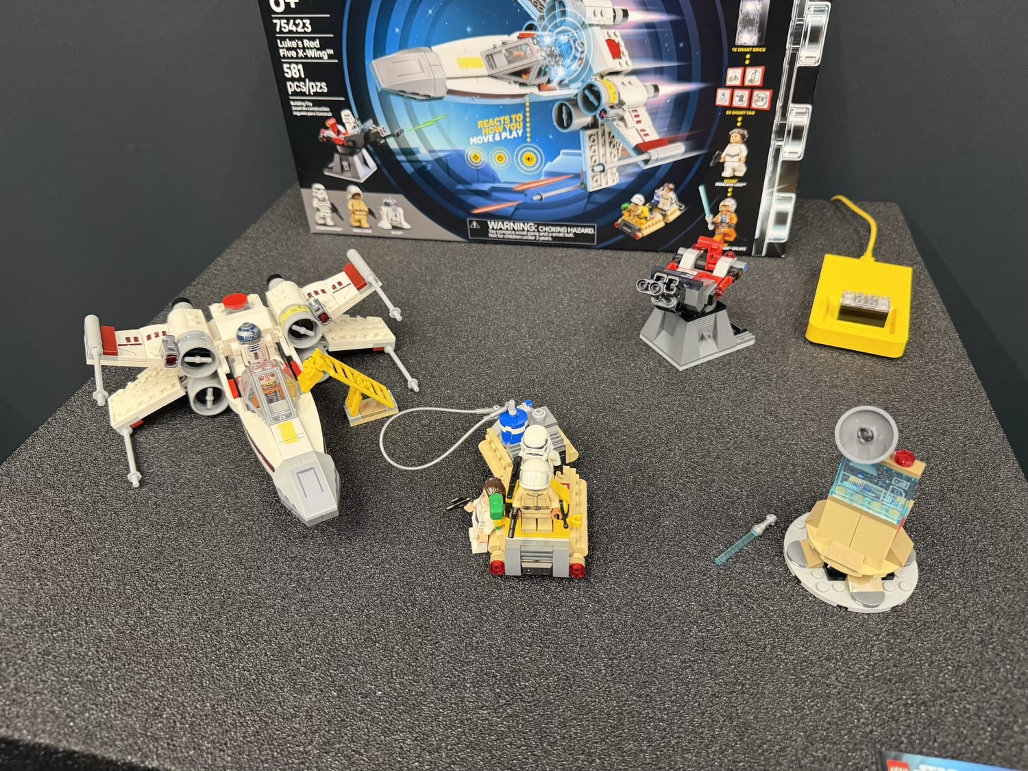 Es war mehr als beeindruckend zu sehen, was der Smart Brick im Zusammenspiel mit dem X-Wing alles anstellen kann. Der Bewegungssensor erkennt schnelle und langsame Bewegungen und liefert die passenden Fluggeräusche. Fliegt ihr einen Looping, beschwert sich R2D2 lautstark über eure Flugkünste. Und betätigt ihr den Abzug, schiebt ihr den Brick vor eine rote Fliese – durch die Farberkennung werden Schussgeräusche der Laserkanonen ausgelöst. Im Kampf gegen den Tie Fighter aus dem anderen Set sind sogar echte Duelle möglich – schließlich können die beiden Smart Bricks aus den beiden Fliegern miteinander kommunizieren.