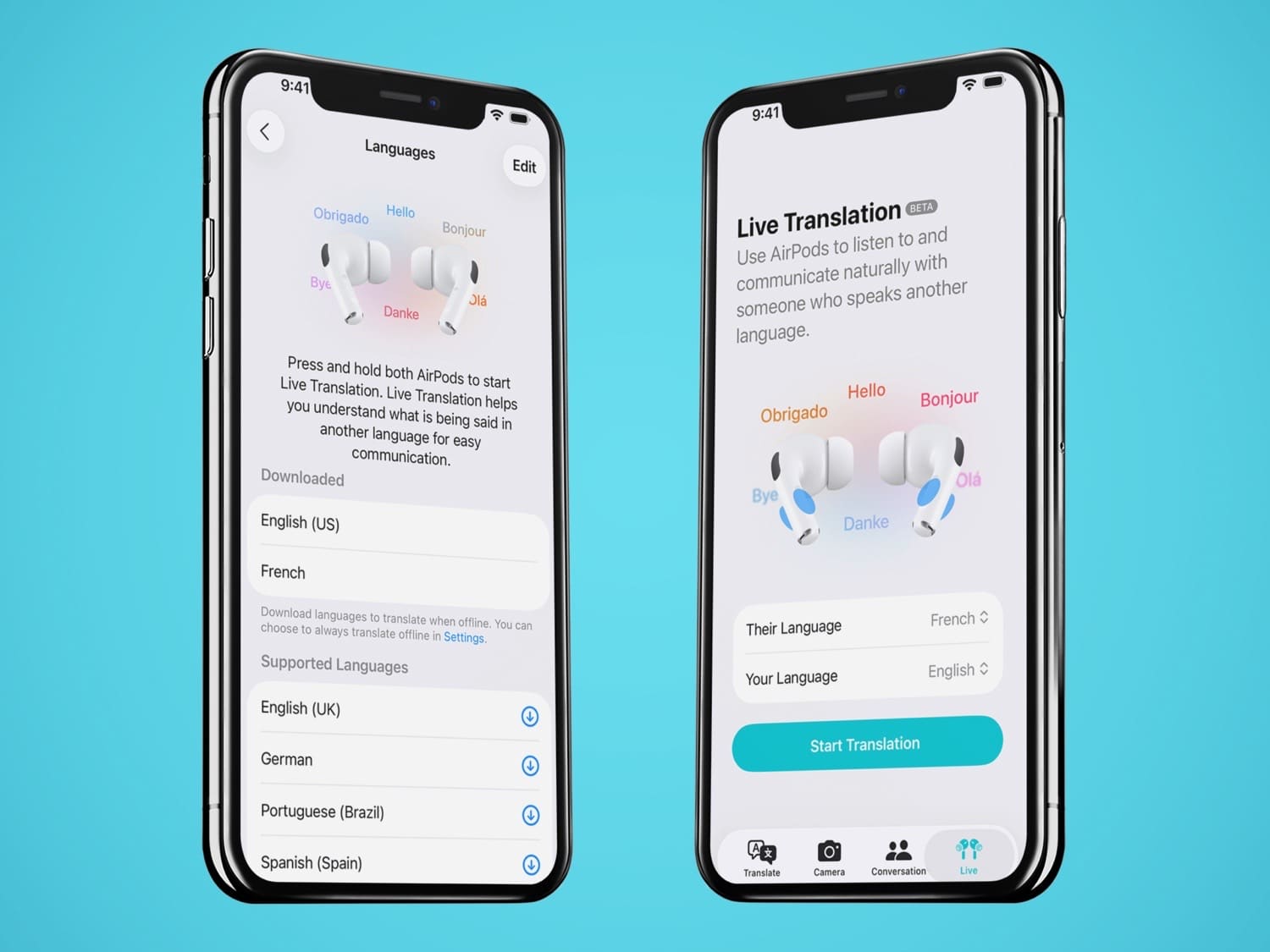 Ab iOS 26, iPadOS 26 und auch mit macOS Tahoe kann man mit Live-Übersetzungen Texte und Audioaufnahmen in Nachrichten, Telefon und FaceTime in Echtzeit übersetzen. Man kann Live-Übersetzungen auch in der Übersetzungs-App mit AirPods 4 mit aktiver Geräuschunterdrückung, AirPods Pro 2 oder AirPods Pro 3 verwenden. Zusätzlich benötigt man für die Funktion ein iPhone 15 Pro oder neuer, iOS 26 oder neuer, aktiviertes Apple Intelligence, die Apple Translate-App (App Store-Link) und die neueste AirPods-Firmware.