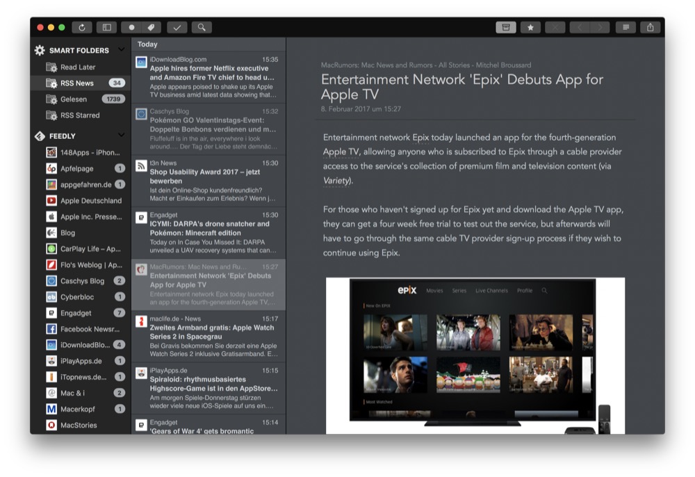 Ein sehr guter Reader, aber für mich bleibt Reeder weiterhin der beste RSS Reader.