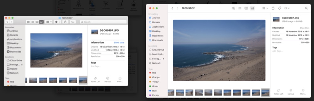 Auf der Website des Designers Andrew Denty gibt es nun eine schöne Gegenüberstellung des Designs zwischen macOS Catalina und dem neuen macOS Big Sur. Denty hat dabei visuelle Unterschiede in Fotos ausgemacht und diese in direkten Vergleichs-Screenshots präsentiert. Dabei sind die Screens von macOS Catalina immer jeweils links, die von macOS Big Sur immer rechts zu finden. Wir listen einige von ihnen nachfolgend auf, weitere findet ihr im Blog von Andrew Denty.