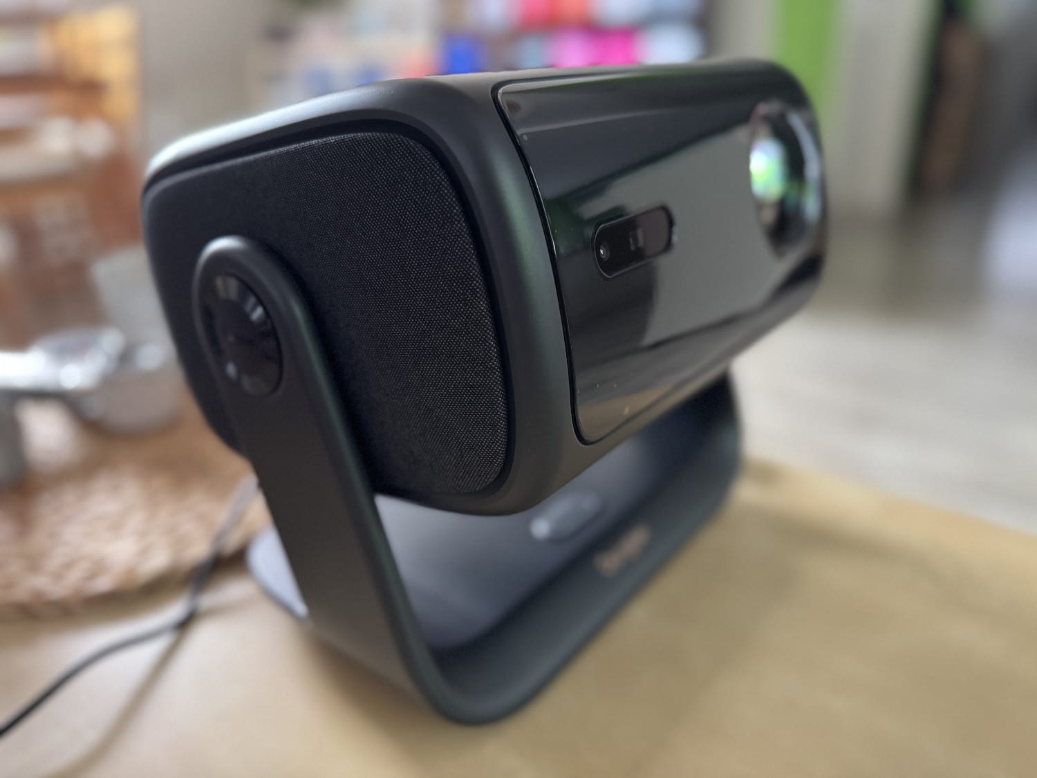Ich hatte den Dangbei MP1 Max bereits im Juli dieses Jahres ausführlich getestet und habe den leistungsfähigen und zudem mit seiner Gimbal-Halterung auch edel anzusehenden mittlerweile als kleines Alternativ-Gerät zu meinem Fernseher im Wohnzimmer ins Schlafzimmer gestellt. Während einer Krankheitsphase vor Weihnachten erwies sich der 4K-Beamer als gute Option, um sich vom Bett aus mit ein paar Serien und Dokus abzulenken.