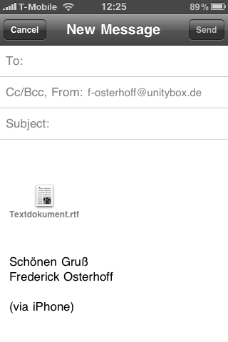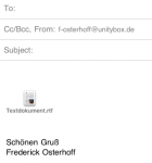 Wenn man sich mit der App verbunden hat kann man dort seine eigenen Ordner anlegen und diese am PC verwalten. Eine weitere Funktion ist das Versenden der Dateien via Email. Durch einen einfachen Klick auf das Dateisymbol erscheint die Email-Maske und man muss nur noch den Empfänger eintragen (ggf. auch weiteren Text).