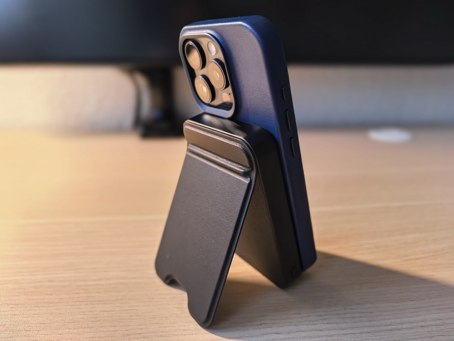 Am unteren Rand der Powerbank befindet sich auch eine LED-Anzeige, die praktisch mittig im Ausschnitt des Ständers platziert wurde. So kann der Ständer zudem bequem ausgeklappt werden, und man behält den Lade- und Akkuzustand jederzeit im Blick. Im direkten Vergleich mit anderen MagSafe-Powerbanks ist der Magnet der Satechi OntheGo nicht ganz so stark, so dass es selbst am „nackten“ iPhone zu einem leichten Verrutschen kommen kann. Meiner Einschätzung nach ist es vor allem der untere Magnet zur Ausrichtung, der hier etwas schwächelt.