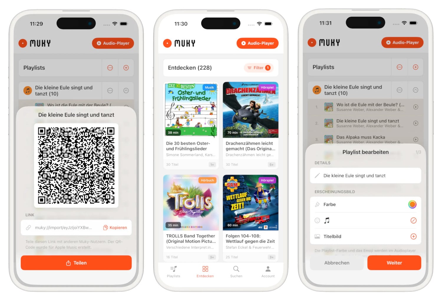 Und der Entwickler arbeitet weiter kontinuierlich an Muky, und hat jetzt die neue Version 4.0 im deutschen App Store veröffentlicht. Mit dem großen Versionssprung wurden gleichzeitig auch neue Funktionen für die kindgerechte Musik-App implementiert. So gibt es ab sofort die Möglichkeit, Playlists über einen QR-Code mit anderen Personen zu teilen. „Einfach Code erstellen, scannen lassen – fertig“, berichtet Oliver Janssen. „Ideal für Familien, die Hörbücher oder Musik zwischen Geräten teilen möchten.“