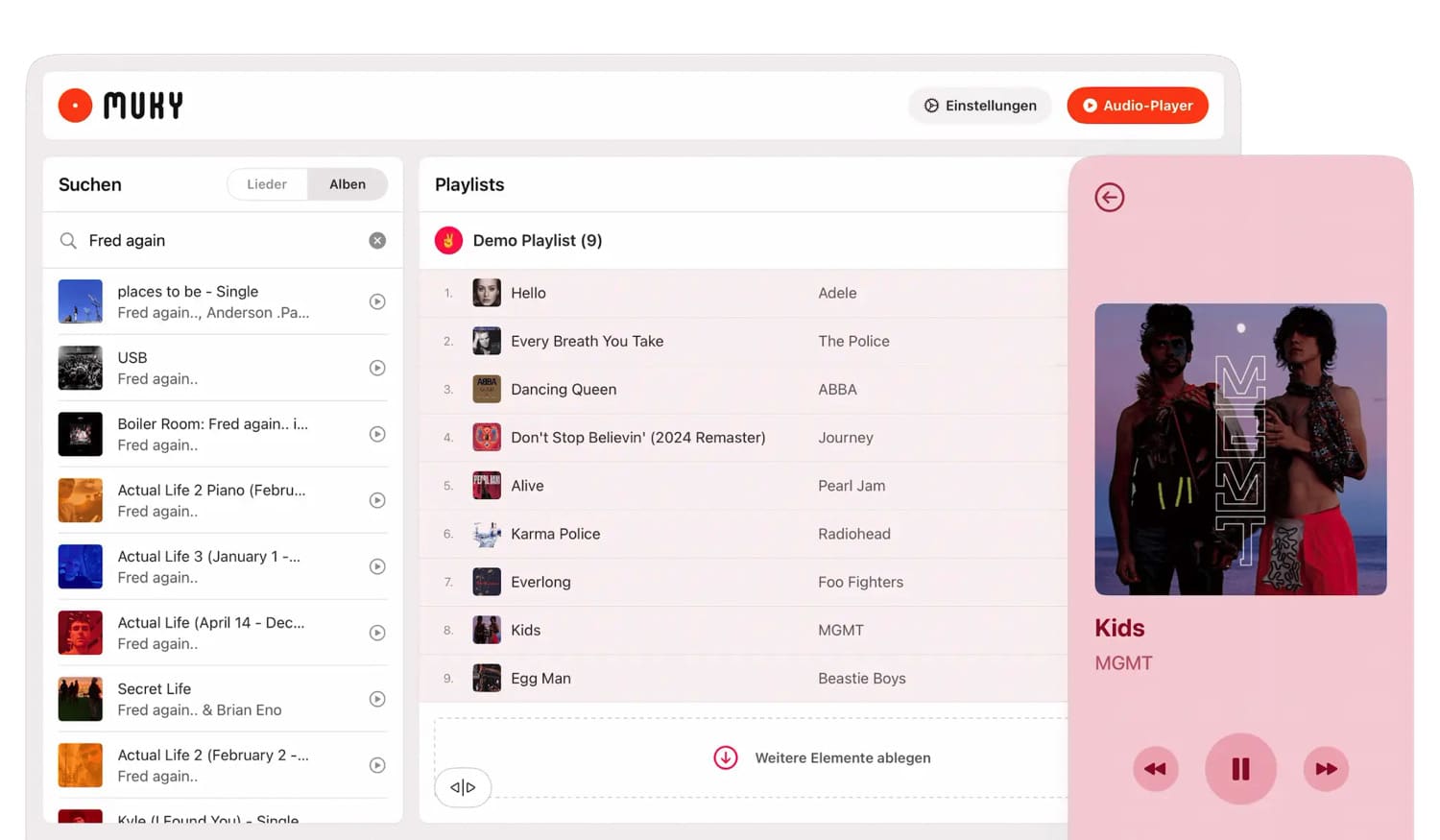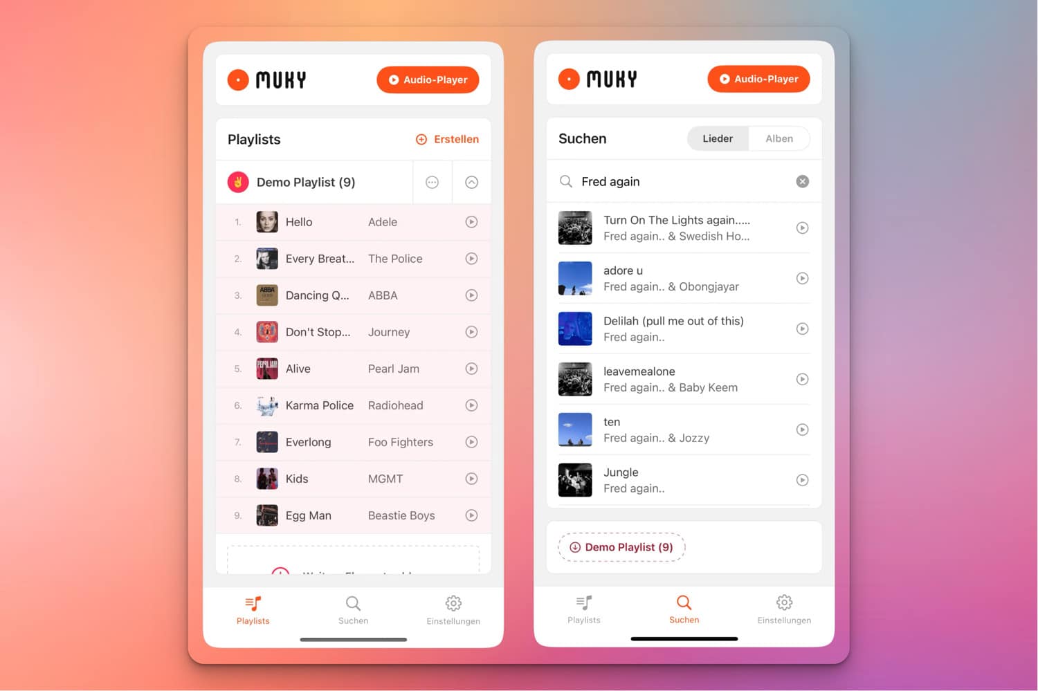 Neben der Integration von Spotify gibt es noch weitere Verbesserungen. Unter anderem einen One-Tap-Sync, um Wiedergabelisten von beiden Diensten mit einem Tipp zu synchronisieren. Zudem gibt es jetzt einen Offline-Modus und eine verbesserte Suche für beide Streaming-Dienste direkt innerhalb der Muky-App. Darüber hinaus wurde das Design der kompletten App verbessert, um ein besseres Benutzererlebnis zu bieten.
