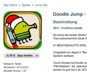 Doodle Jump zählt zu den erfolgreichsten Spielen in der Geschichte des App Stores. Besonders beliebt machen sich die Entwickler von Lima Sky gegenüber der Konkurrenz momentan allerdings nicht. In einem Bericht von Pocketgamer wurde nun bekannt, das man Entwickler anderer Apps dazu aufgefordert hat, das Wort Doodle aus ihrem Namen zu nehmen.