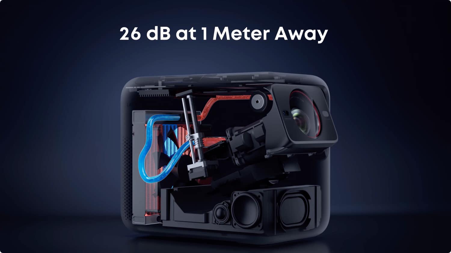 Ich habe noch nicht ganz so viele Beamer ausprobiert, allerdings ist klar, dass die Wärme abgeleitet werden muss. Der Nebula X1 setzt erstmals auf eine Flüssigkühlung, die die Lautstärke auf 26 Dezibel reduziert. Im Vergleich zum Nebula 4K SE empfinde ich den neuen X1 als lauter. Sobald aber Ton ausgegeben wird, hört man das „Surren“ nicht mehr. Hat man zum Beispiel Kopfhörer via Bluetooth verbunden, ist das Thema ohnehin nicht erwähnenswert.