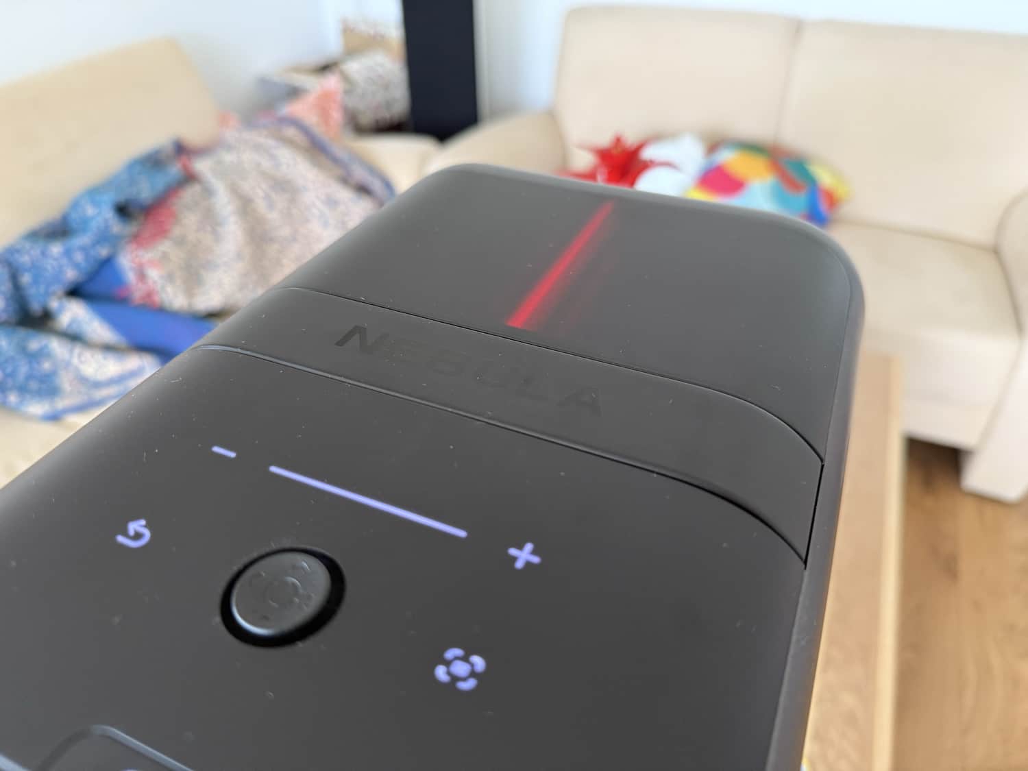 Der Nebula X1 lässt sich aber auch direkt am Gerät steuern, denn hier stehen Touch-Tasten sowie ein D-Pad zur Verfügung, um durch Menüs zu steuern. Die Fernbedienung ist die bequemere Wahl, doch lässt sich der Beamer auch ohne bedienen.
