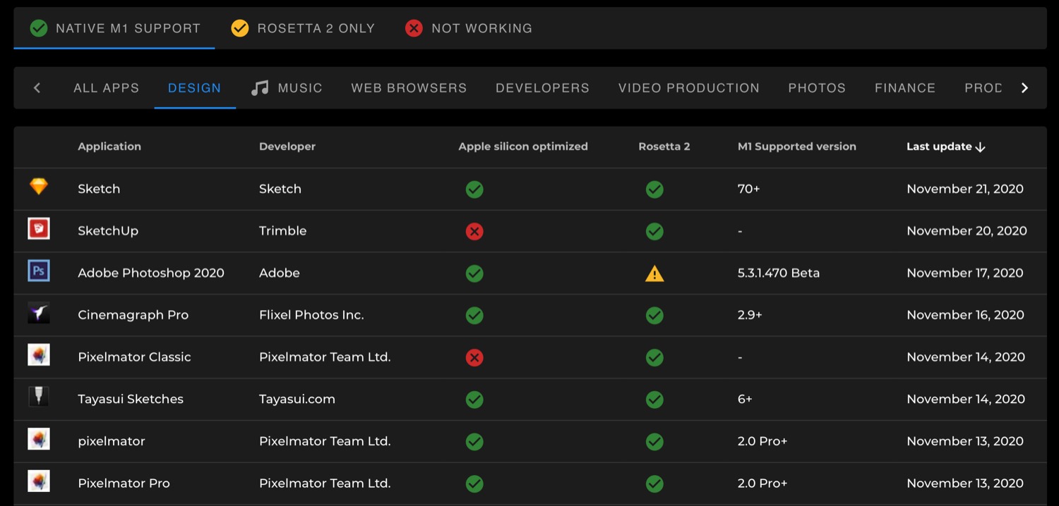 Während zahlreiche Entwickler direkt zum Start der neuen Macs mit M1-Chip ihre Programme für den neuen Prozessor optimiert haben, gibt es gleichzeitig noch sehr viele Apps, die diesen vermissen lassen. Doch welche Programme sind schon optimiert? Eine neue Webseite klärt auf.