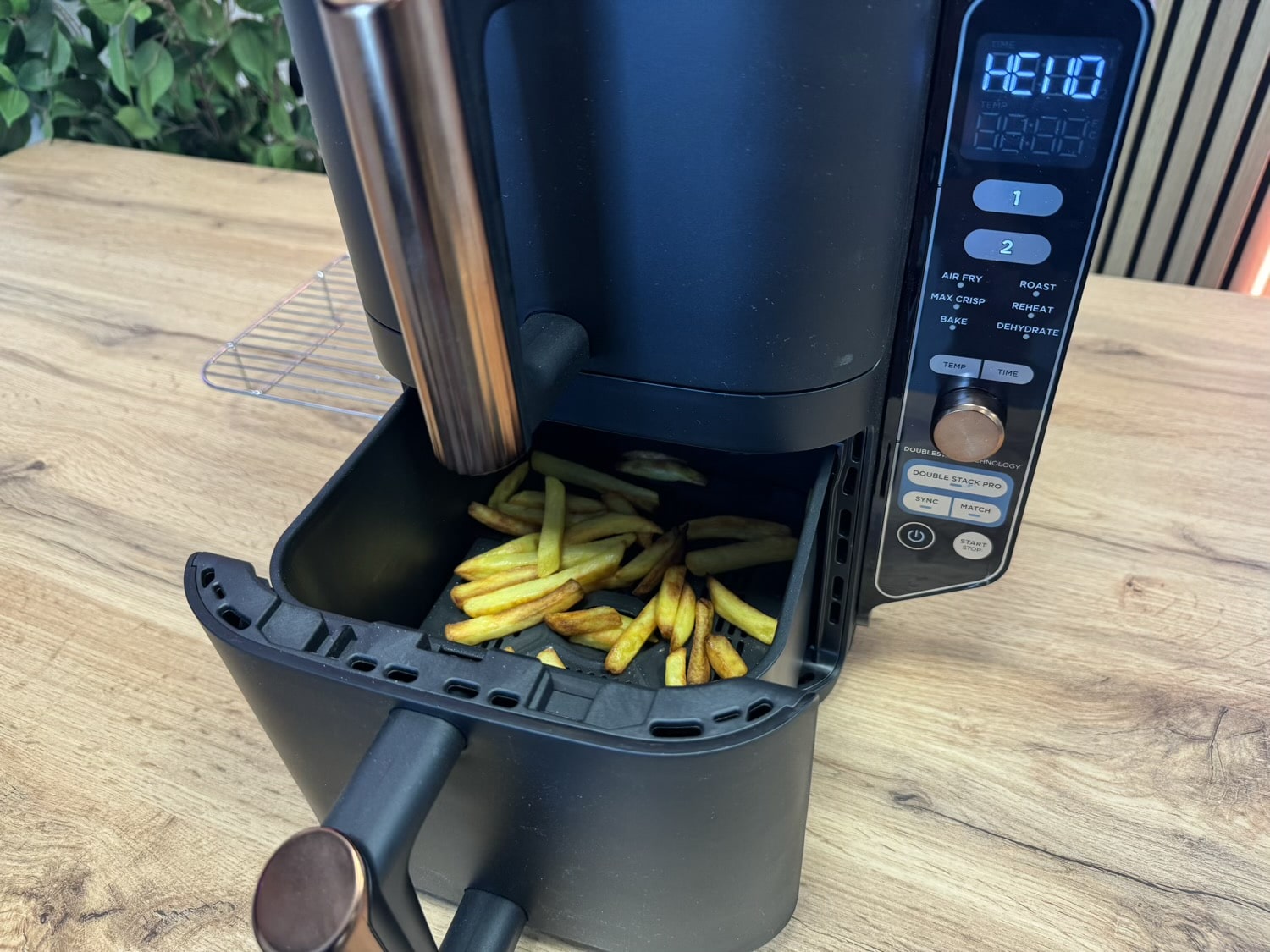Viel wichtiger ist am Ende allerdings, was dabei herauskommt. Was die Ergebnisse angeht, muss sich der Ninja Double Stack XL auf keinen Fall verstecken. Die Pommes werden schön knusprig, sind innen aber noch weich. Und auch Fleisch bereitet der Airfryer so zu, wie man er erwarten kann.