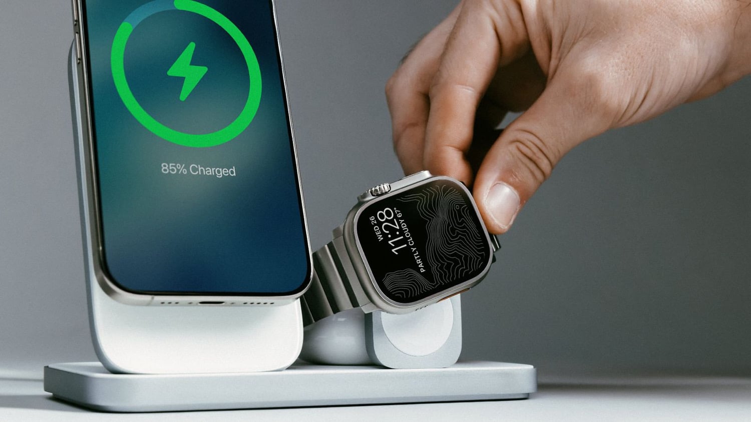 Der Nomad Stand One Max für 149 Euro weist ein ähnliches Design wie der Stand One auf, enthält jedoch zusätzlich noch einen Apple Watch-Ladepuck. Er kann ein iPhone, AirPods und eine Apple Watch gleichzeitig aufladen. Wie beim Stand One ist ein USB-C-Kabel im Lieferumfang enthalten, ein Netzteil jedoch nicht.