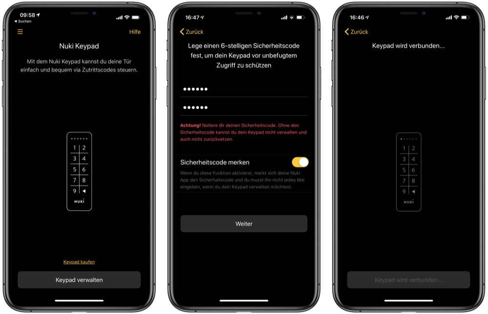 Aber immer der Reihe nach. Das Nuki Keypad kommt in einem kleinen Karton und ist ohne große Umwege direkt einsatzbereit: Die beiden zum Betrieb notwendigen Knopfzellen sind bereits eingelegt und mit einem langen Tastendruck bringt man das Nuki Keypad in den Kopplungsmodus. Über die App ist die Verbindung zum smarten Türschloss schnell hergestellt und auch der erste sechsstellige PIN vergeben.