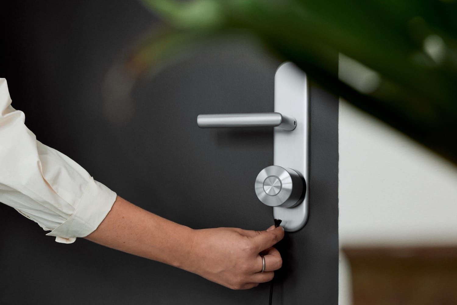 Es ist durch das magnetische Kabel kein Problem, wenn jemand die Tür öffnet, wenn das Kabel angedockt ist.