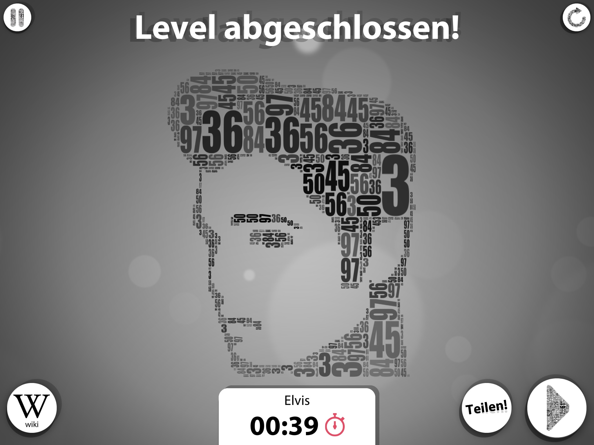 Neben der Anbindung an Wikipedia, hier wechselt man leider zu Safari anstatt innerhalb der App zu bleiben, kann man das freigelegte Bild per Facebook, Twitter oder E-Mail teilen. Falls man die Zahl mal nicht schnell genug findet, kann man sich Unterstützung holen, die allerdings ihren Preis in Form von virtuellen Münzen hat. Durch erfolgreich gelöste Rätsel erhält man Münzen, kann sein Konto aber über In-App-Käufe schneller aufbessern.