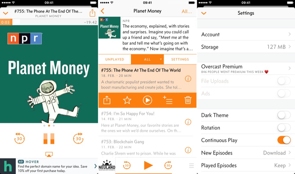 Overcast ist neben Castro definitiv die beste Wahl, wenn man auf der Suche nach einer Podcast-App ist. Overcast ist ein kostenloser Download, der sich über Werbung finanziert, die für 10 Euro im Jahr deaktiviert werden kann. Overcast liegt ab sofort in Version 3.0 zur Installation auf iPhone, iPad und Apple Watch zum Download bereit und ist 18,9 MB groß.