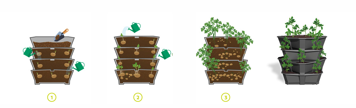 Während es bei Herbert, einem kurz vor der Auslieferungen befindlichen Kickstarter-Projekt, eine App geben soll, mit der man das Licht des Pflanzensystems steuern kann, geht es bei Paul Potato viel einfacher zur Sache: Im Prinzip handelt es sich um einen Turm aus vier Etagen, in dem man Kartoffeln, Gemüse oder auch Kräuter anbauen kann. Auf einer Fläche von nur 38 x 38 Zentimetern sollen mit Paul Potato zehn Mal so viele Kartoffeln angebaut werden können wie sonst üblich, selbst auf einem Balkon soll man eine eigene Ernte erzielen können.