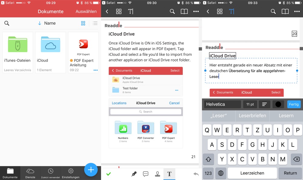 Habt ihr schon einmal versucht, eine PDF-Datei mit dem iPhone oder iPad zu bearbeiten? Sobald es um mehr geht, als nur ein paar Notizen und Anmerkungen, wird das zu einem sehr schwierigen Unterfangen. Spätestens wenn es darum geht, auch den bereits in der PDF-Datei enthaltenen Text zu editieren, wird es mit mobilen Geräten aber mehr als schwer. Abhilfe schafft die heute aktualisierte Universal-App PDF Expert (App Store-Link) des bekannten Entwickler-Teams Readdle.