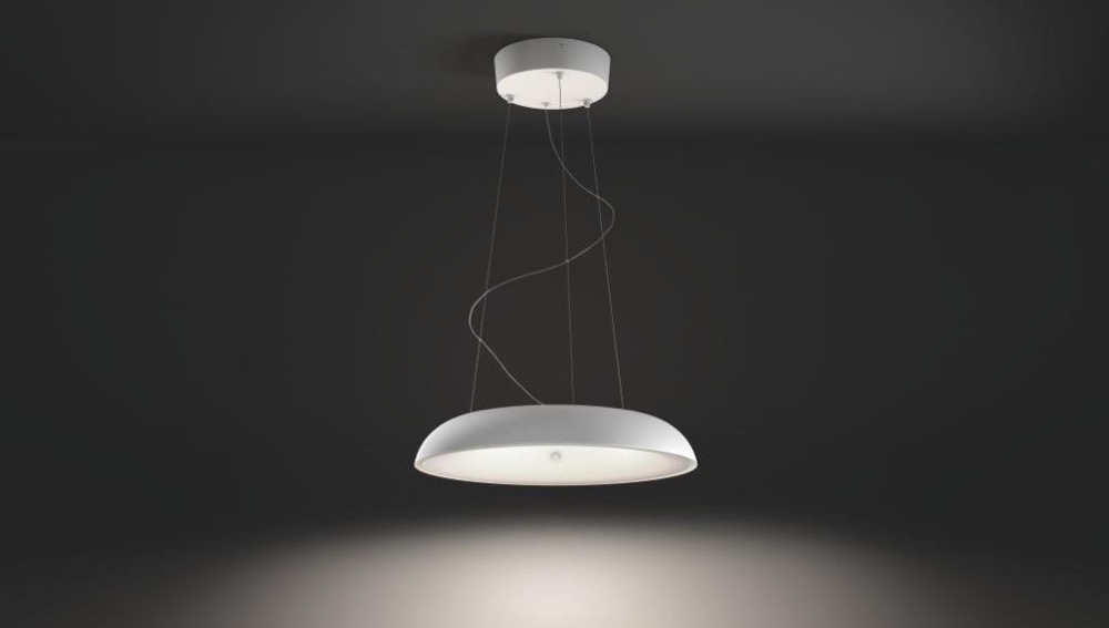 Hängt sie allerdings erst einmal an Ort und Stelle, wird schnell deutlich, dass sich Philips durchaus Gedanken gemacht hat. Die drei Metallschnüre können einfach in das Gehäuse an der Decke geschoben werden und verhaken sich dort automatisch. Die Lampe in der perfekten Höhe zu positionieren, wird so zum Kinderspiel. Selbst an Dachschrägen lässt sich die Lampe so theoretisch problemlos befestigen und gerade aufhängen.