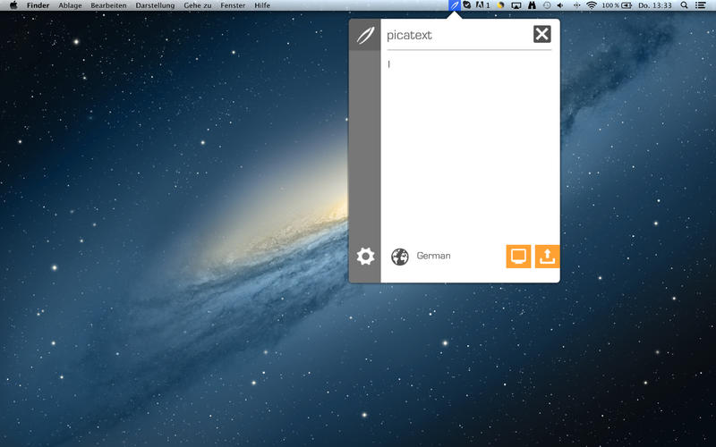 Picatext integriert sich nach der Installation nahtlos in die obere Menüleiste und kann auf Wunsch auch per Hotkey aufgerufen werden. Mit Picatext ist es möglich den Text auf Bilddateien zu erkennen und dementsprechend in Text umzuwandeln. Hier bieten sich einem zwei Möglichkeiten: Man kann Picatext den Pfad der Datei nennen und diese wird entsprechend gescannt. Viel praktischer ist allerdings die Funktion, wie man sie vom Tool „Bildschirmfoto“ kennt. Hier kann man einfach einen beliebigen Bereich auf seinem Bildschirm markieren in dem Text vorhanden ist und Picatext versucht automatisch diesen umzuwandeln.