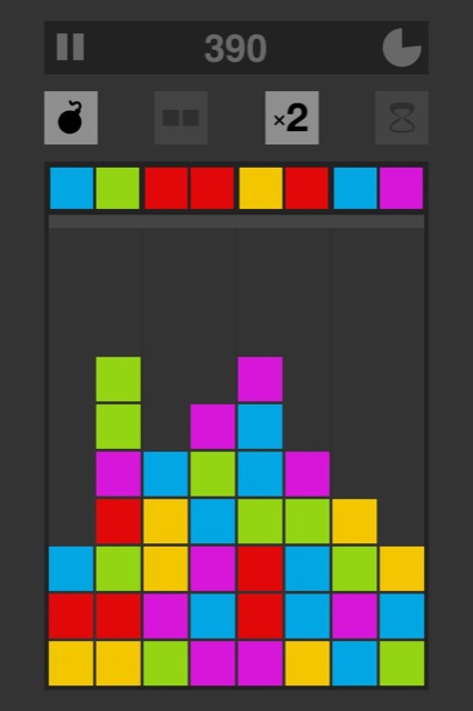 Die meisten Punkte gibt es in Pile natürlich durch lange Ketten und Kombinationen. Durch die Tatsache, dass man die Blöcke nicht drehen, sondern nur die Farben tauschen kann, ist Köpfchen gefragt – und das unter Zeitdruck. Im Laufe des Spiels bekommt man aber immer wieder kleine Power-Ups zugesprochen, mit denen man beispielsweise die Zeit verlangsamen oder die Punktzahl verdoppeln kann.