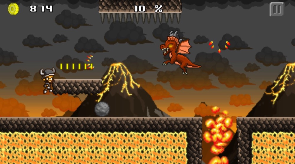 Insgesamt gibt es in Pixel Heroes fünf große Welten – Castle Siege, Infested Village, Goblin Forest, Danger Dungeon und Magma Mountain – die zunächst in einem Level-Modus zu 100 Prozent absolviert werden wollen, um für sie den endlosen Survival-Modus freischalten zu können. Unterwegs heißt es, Münzen einzusammeln, mit einfachen Fingertipps auf die linke bzw. rechte Bildschirmhälfte zu springen und zu schießen, Hindernissen auszuweichen, auf Plattformen zu hüpfen und vor allem: Gegner zu besiegen. Und das mit einem automatisch laufenden Protagonisten, dessen Tempo alles andere als gemächlich ist.