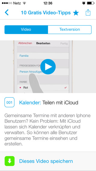 Insgesamt 100 Tipps für Einsteiger gibt es in der iPhone-App Pocket Academy (App Store-Link), die im App Store unter dem Namen „100 Video-Tipps für iOS 7“ geführt wird. Der Download ist kostenlos, die Inhalte müssen per In-App-Kauf freigeschaltet werden. Aber keine Sorge: Das Premium-Paket im Wert von 4,49 Euro könnt ihr noch bis zum Sonntag kostenlos freischalten.