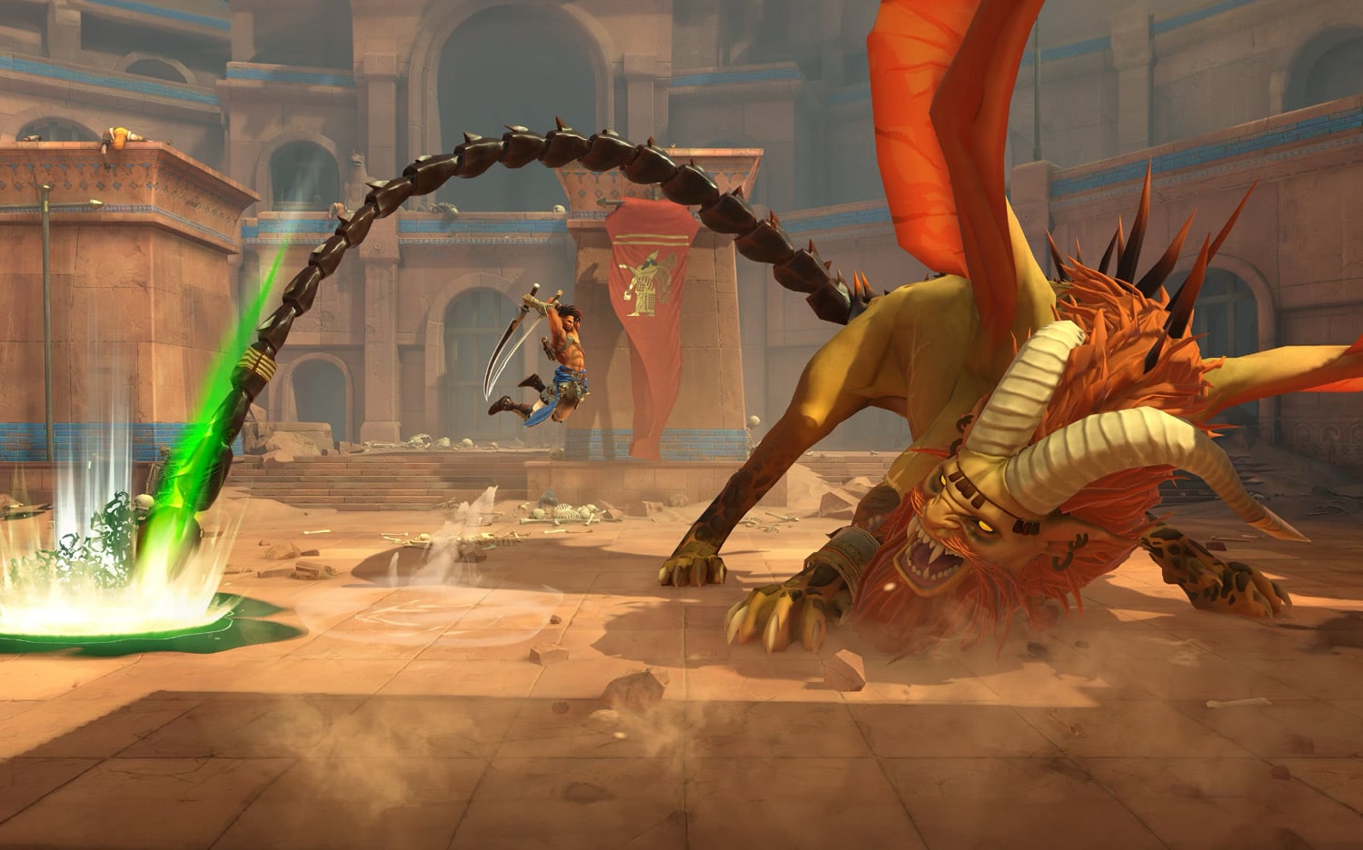 - Entfessle deinen inneren Krieger: Nutze deine Zeitkräfte, Kampfkünste und Plattformer-Fähigkeiten, um tödliche Kombos auszuführen, und besiege mythologische Kreaturen und andere Gegner, die von der Zeit korrumpiert wurden.
