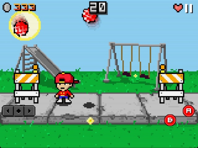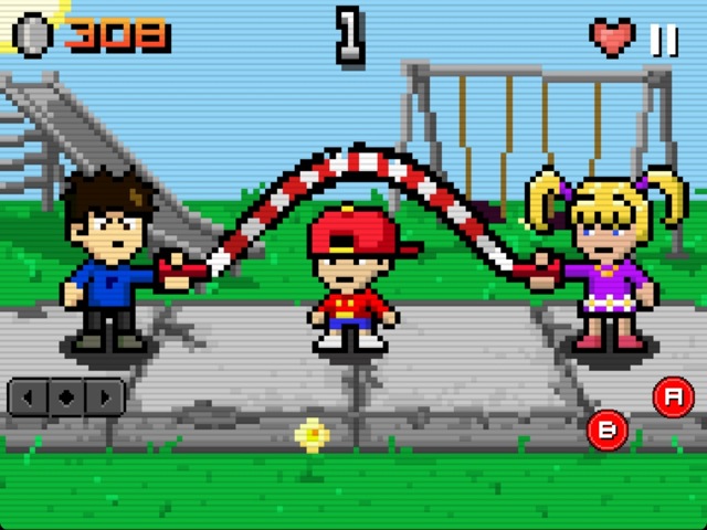 Die Steuerung erfolgt, wie meistens in Retro-Platformern, über eine Art virtuelles Gamepad. Neben den Tasten links und rechts gibt es auch noch einen „A“- und „B“-Button, ähnlich wie beim grauen Gameboy-Klotz. Wer im Besitz eines iCade ist, kann Recess Riot auch damit nutzen. Bislang sind natürlich 2 Minigames in der App noch nicht allzu viel, jedoch wollen die Entwickler schon bald weitere Spielchen nachreichen.