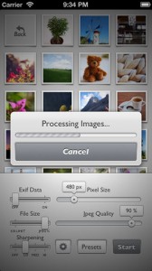 Sehr praktisch: Man kann bestimmte Vorlagen abspeichern und diese dann mit einem Klick auf einen ganzen Haufen von Fotos anwenden. Nachdem man auf „Start“ gedrückt hat, werden die Bilder auf einen Schlag konvertiert und in der Foto-Bibliothek im Ordner „Reduce Export“ gespeichert – die Originale bleiben also erhalten.