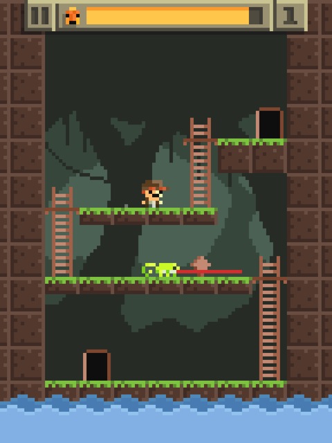 In diesem bunten Platformer bestreitet man über 100 Level in fünf verschiedenen Welten, und muss sich gegen unliebsame Gegner und schwierig zu meisternde Umgebungen durchsetzen. Vor dem Start durchlauft ihr ein kurzes Tutorial, in dem ihr die Steuerung des Spiels kennenlernt. In jedem Level gilt es, sich auf dem Bildschirm nach oben zu einem Ausgang vorzuarbeiten. Die kleine Hauptfigur stürmt dabei aus einer Tür am unteren Bildrand und läuft automatisch, und klettert auch eigenmächtig Leitern hinauf. Stoppen kann man das Männchen nur, indem man den Screen antippt und den Finger hält. Lässt man los, läuft die Figur weiter.