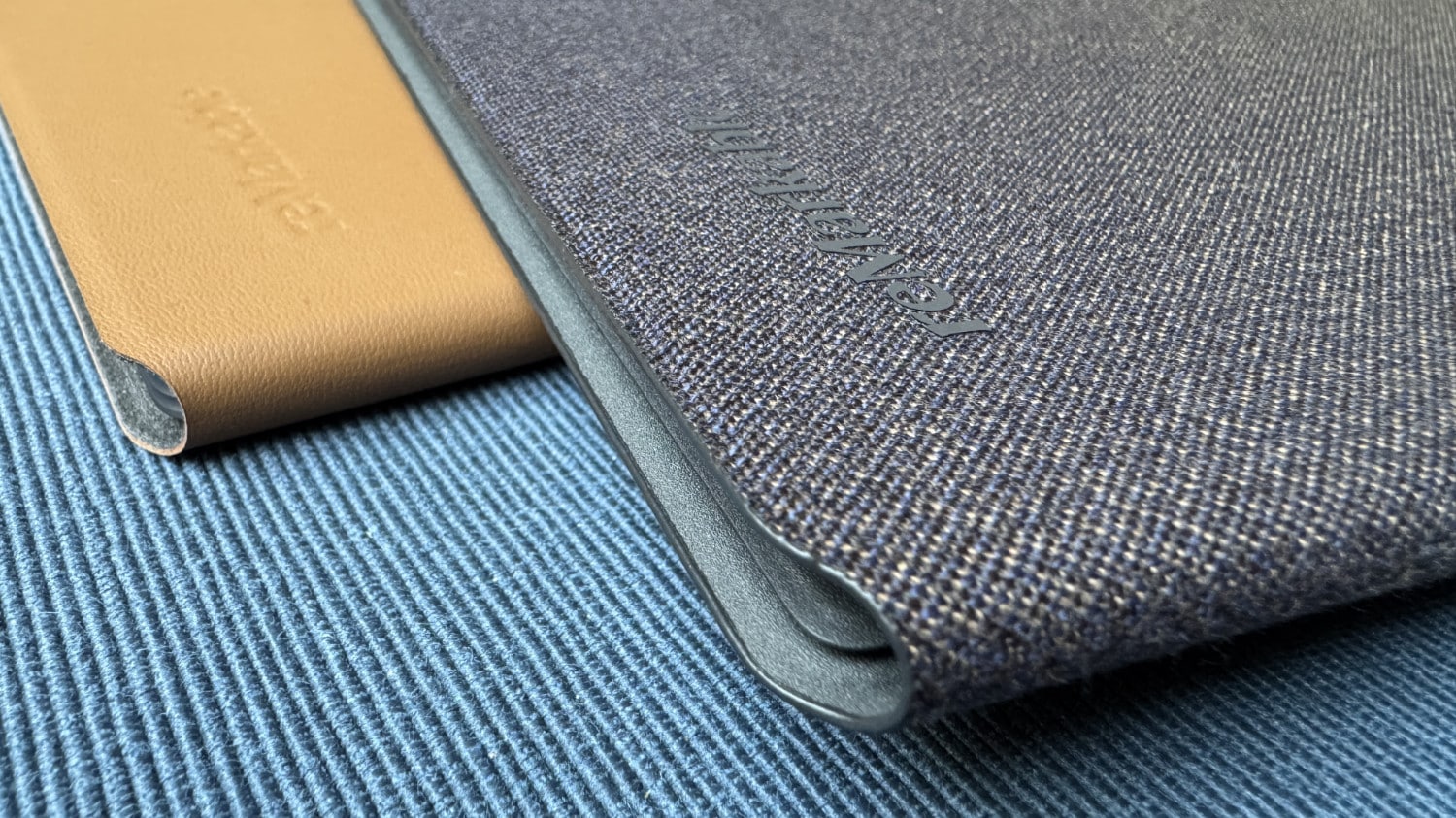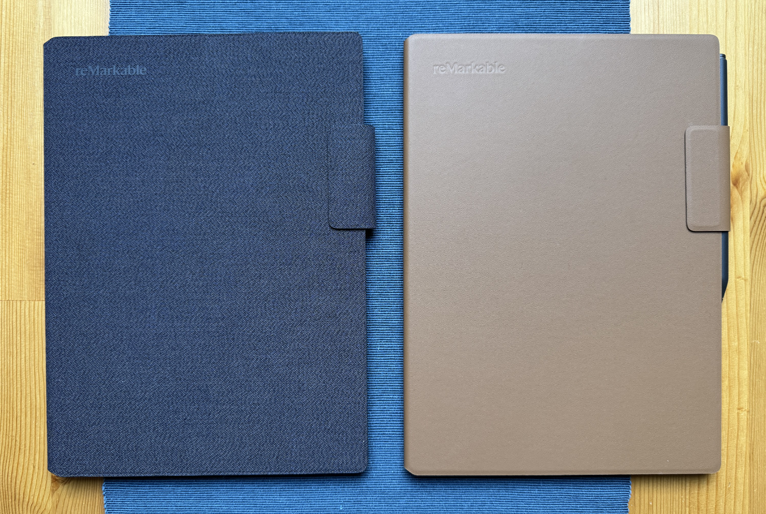 Das sind also die grundlegenden Spezifikationen des neuen reMarkable Paper Pro – aber wie schlägt sich das digitale Notizbuch samt seines Farbdisplays im Alltag? Lohnt der Umstieg vom reMarkable 2 auf das neue Modell? Ich hatte nun seit ein paar Wochen die Möglichkeit, mir die Neuerscheinung von reMarkable genauer ansehen zu können, und das inklusive einer mitgelieferten Book Folio-Schutzhülle aus braunem Leder sowie dem passenden Type Folio, einer Tastaturhülle, in der Farbvariante „Basalt“ aus gemustertem Stoff.