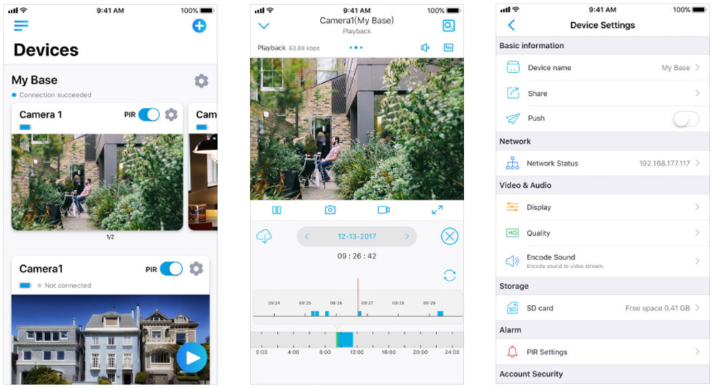 Ich habe die Reolink Argus einige Zeit lang in meiner Wohnung ausprobiert und kann bestätigen, dass die PIR-Alarme zuverlässig und schnell auf meinem iPhone landeten – und das auch bei schlechten Lichtverhältnissen, beispielsweise bei Dämmerlicht oder am Abend mit nur wenig indirekter Beleuchtung des Raumes. Hat man eine MicroSD-Karte in die Kamera eingesetzt, werden die bewegungsgesteuerten Videos sogar aufgezeichnet, so dass man nichts Wichtiges mehr verpasst. Laut Herstellerangabe reicht eine 16 GB-Speicherkarte, um für 30 Tage lang täglich etwa 15 Minuten Videos aufzunehmen – pro Minute Videoaufnahme werden maximal 38 MB an Speicherplatz benötigt. Und auch vor unbemerkter Überwachung muss man keine Angst haben: Die Kamera verfügt über eine Indikator-LED, die sofort aufleuchtet, sobald auf das Live-Bild zugegriffen wird.