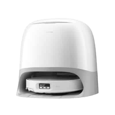 Die Basisstation des Qrevo Curv 2 Pro kann dagegen wieder punkten. Sie sieht – Zitat der Nachbarin – ein wenig aus wie ein Katzenklo, ist technisch aber hervorragend ausgestattet: Heißwasser-Moppwäsche mit 100 Grad, 55 Grad Heißlufttrocknung und das bereits erwähnte Ablegen der Wischpads sind nur einige der Features. Der Staubbeutel wird beispielsweise mit frischer Luft getrocknet und auch die Station selbst reinigt das Waschbrett mit heißem Wasser.