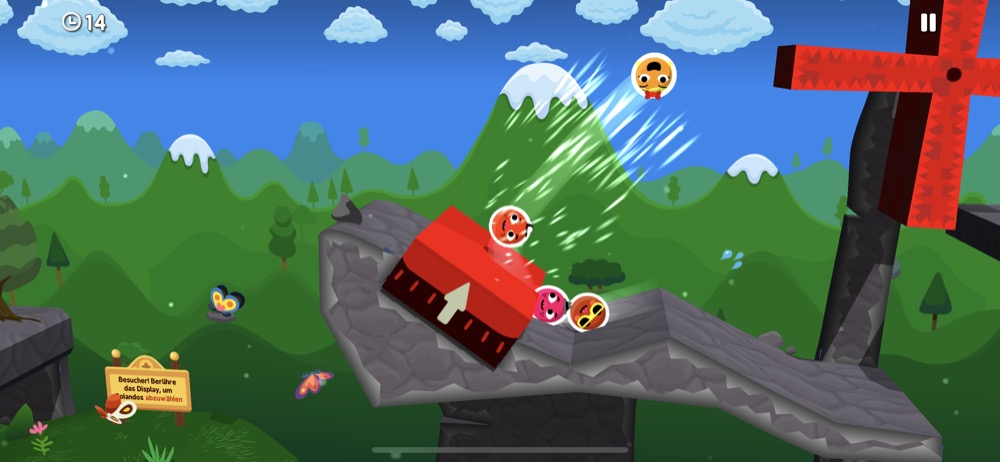 Pro Level können dabei bis zu drei Medaillen gesammelt werden. Die erste gibt es für das Erreichen des Ziels, die zweite für alle geretteten Rolandos und die dritte für die Einhaltung eines Zeitlimits. Und insbesondere letzteres ist nach einigen Leveln gar nicht mehr so einfach, so dass es durchaus Spaß macht, ein Level noch ein zweites Mal in Angriff zu nehmen.