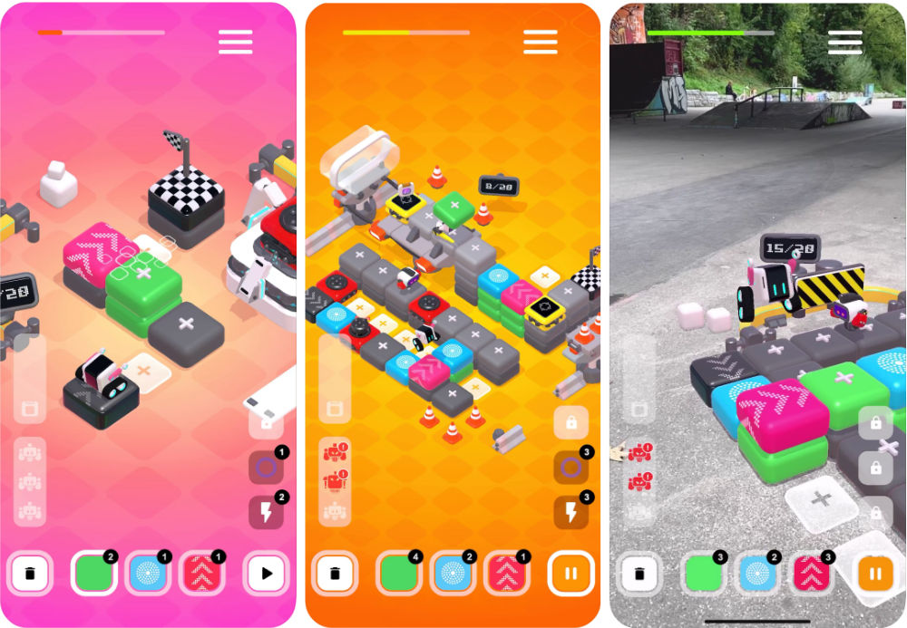 Besonders schön: Rosie’s Reality kann sowohl in einem Einzelspieler-, als auch in einem Mehrspieler-Modus absolviert werden, zwischen dem nach der erfolgten Freischaltung jederzeit gewechselt werden kann. In jedem Modus stehen drei Welten mit jeweils 20 Rätseln und zusätzliche Rettungsmissionen zur Verfügung. Ebenfalls möglich ist auch das Spielen in einer Augmented Reality-Ansicht: So kann Rosie beispielsweise auf dem eigenen Wohnzimmer- oder Küchentisch ihre Wege fahren. Dieser Modus wird nach erfolgreichem Abschluss des siebten Levels aktiviert. Ein abschließender YouTube-Trailer zeigt euch darüber hinaus weitere Eindrücke zu dieser Apple Arcade-Neuerscheinung.