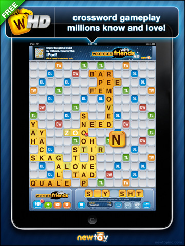 Wer sich gerne die paar Euro für Scrabble sparen will und der englischen Sprache mächtig ist, sollte einen Blick auf Words With Friends HD werden. Das sonst 2,39 Euro teure Spiel wird jetzt auch in einer kostenlosen Version angeboten.