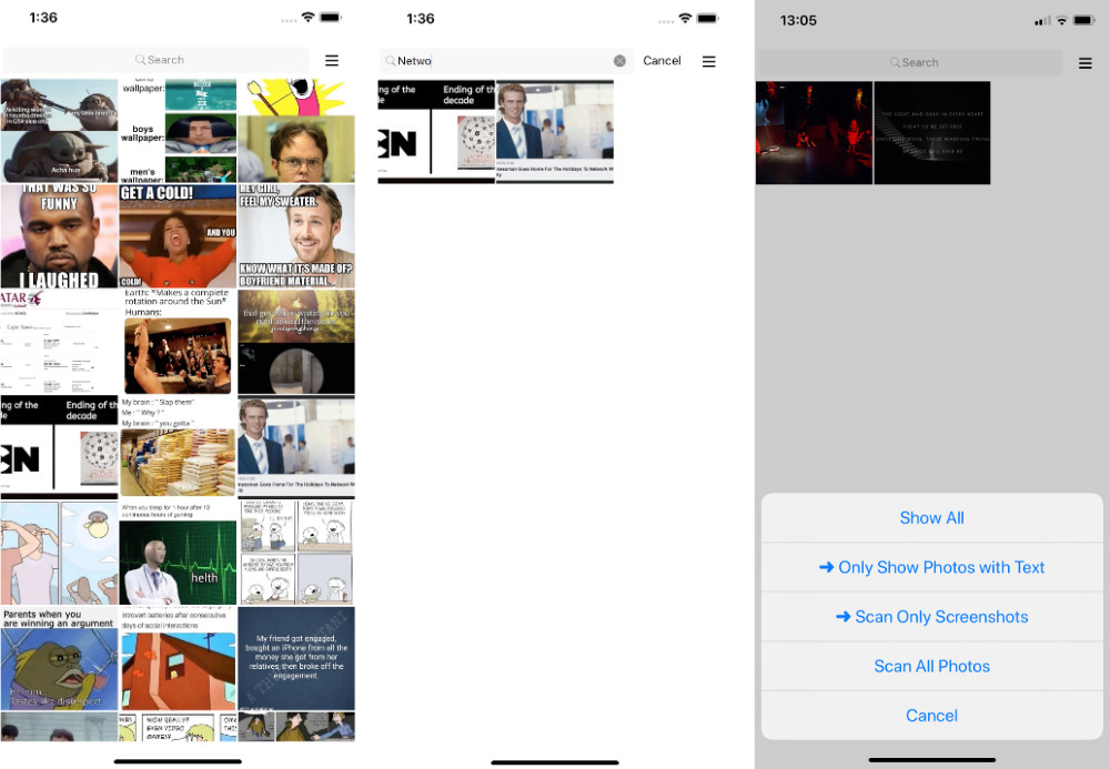 Hat man der App Zugriff auf die eigene Fotobibliothek gegeben, sucht Screenshot Hero automatisch nach Screenshots und macht diese über eine Text-Suchfunktion auffindbar. Hat man beispielsweise ein Meme als Screenshot gespeichert, kann man Wörter des Textes in die Suchleiste eingeben und bekommt dann das Ergebnis präsentiert.